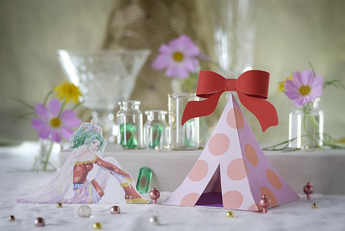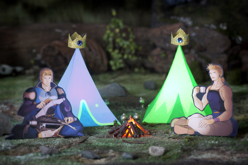 #フィガロ兄弟生誕祭2020 #bravo_figaro_2020 お誕生日おめでとうございます! お祝い用にペーパークラフトでテントを作りました 背景はフィガロ城内とコルツ山です 中にLEDキャンドルを入れるとやさしい明かり