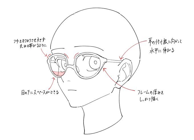 昨日のメモですが、「レンズ内の輪郭のズレがない」と多くのご指摘を受けました。我が社の協議の末、「そうだ。あれは伊達メガネだったということにしよう」という結論に至りましたので、“そういうキャラ”を描く際の参考にしてください。いつかリベンジします! twitter.com/start_furuike/…
