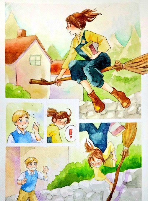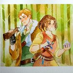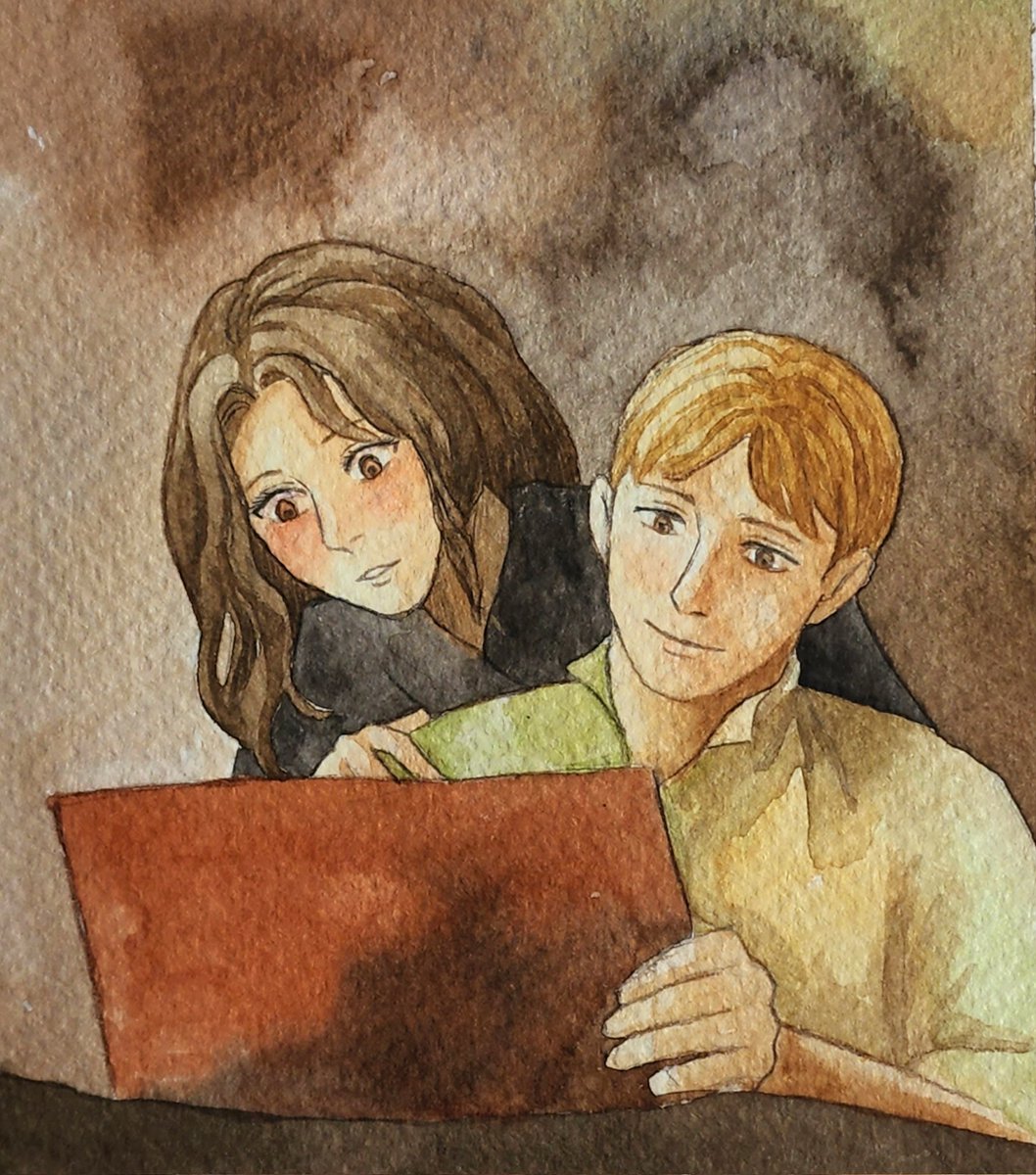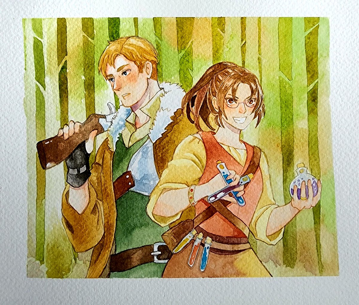 Konsepnya Eruhan cottagecore AU: Witch-hunters (as usual, I was inspired by old movies) Erwin is more physical (he uses a ranged weapon) while Hansi is an alchemist (with chemical substances that can explode etc) #watercolor