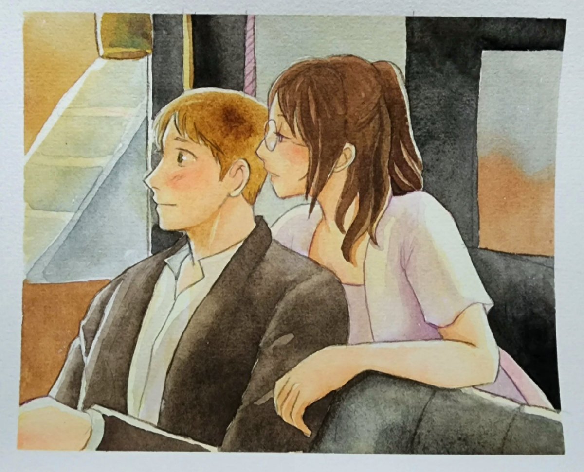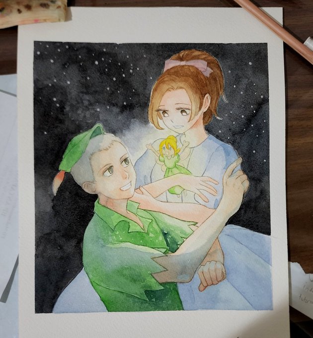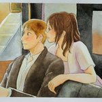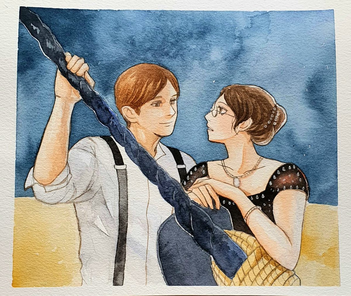 Redrawing the scene when he showed the picture he drew 😬 #mobuhan Titanic AU because idk #watercolor Fun fact: masking tape on the edge of the drawing has been there for 3 months and it didn't break the paper twitter.com/stay_putiful/s…