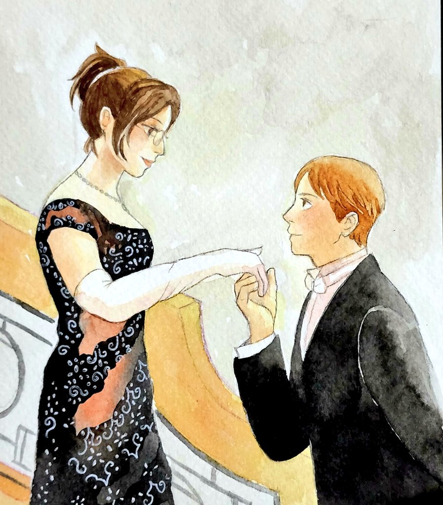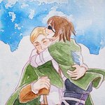 Quick drawing #erehisuweek2022 #day1 I read this Welsh mythology (?) when I was quite anglophile, here's Eren as the young man and Historia as the fairy (that story where he can recognize his love by looking at her footwear strap ^^;) #watercolor