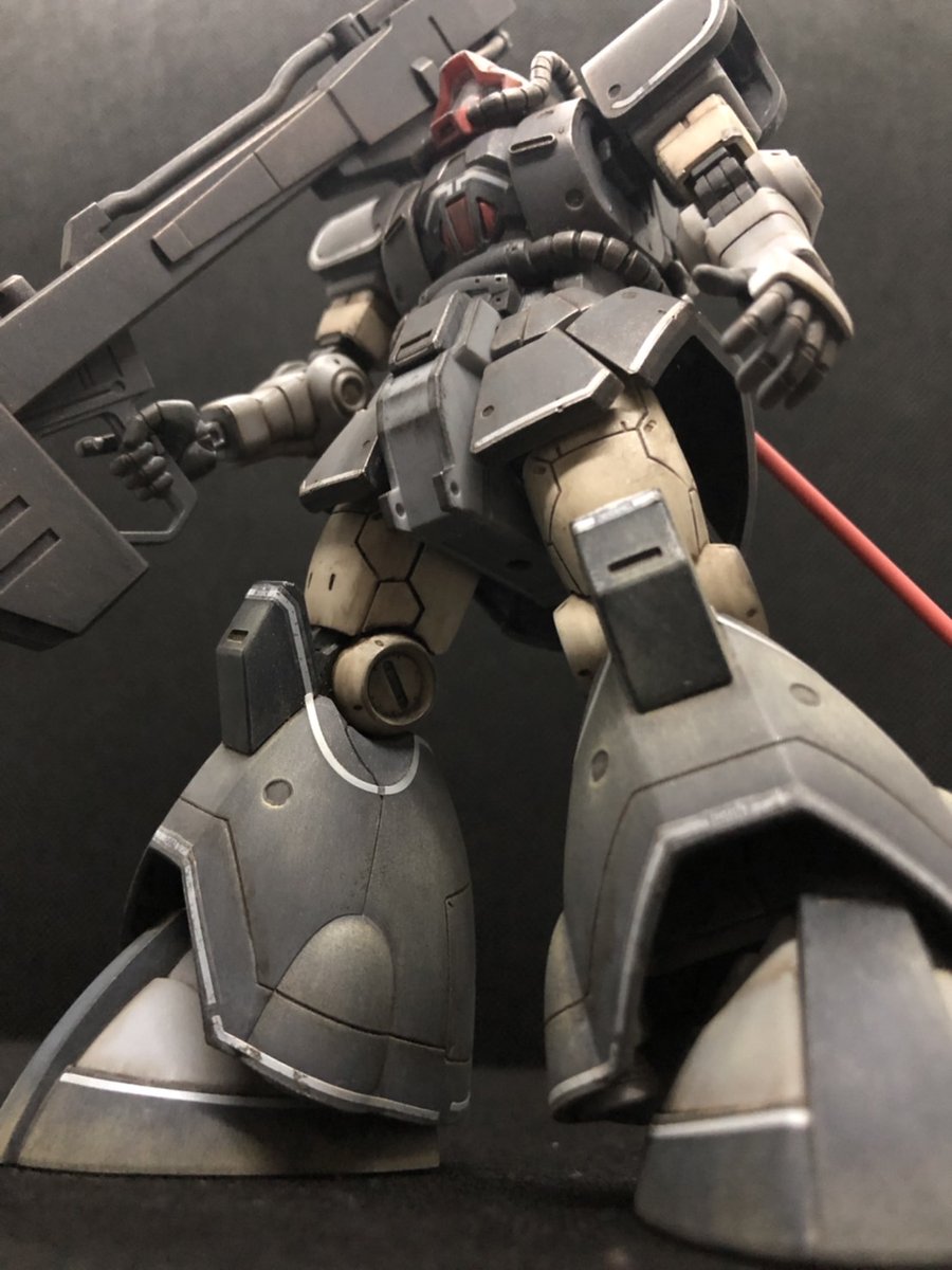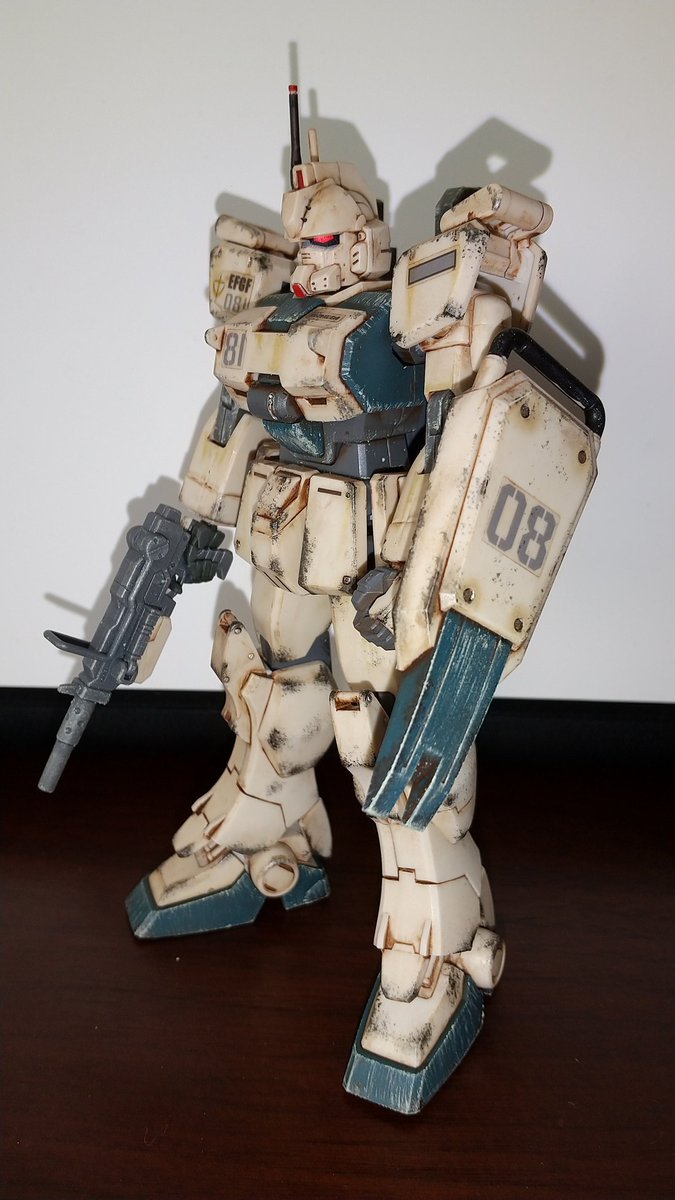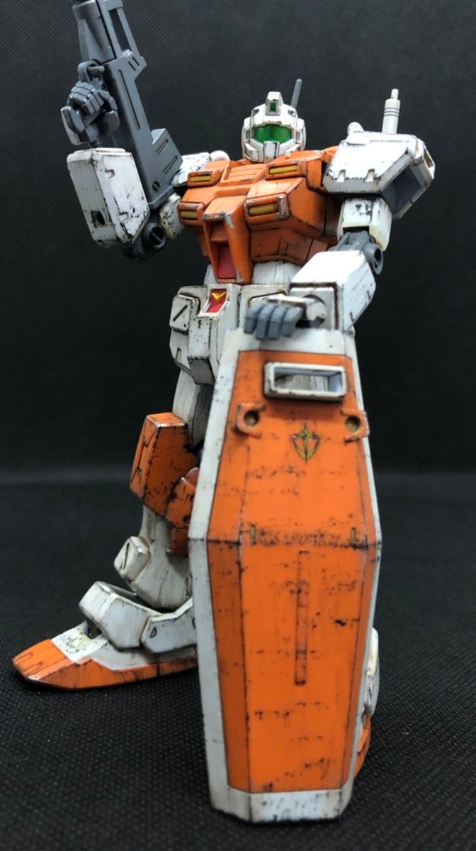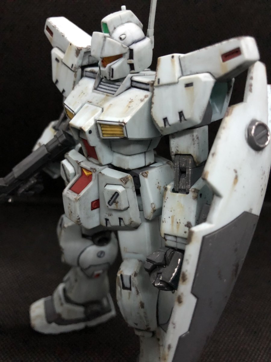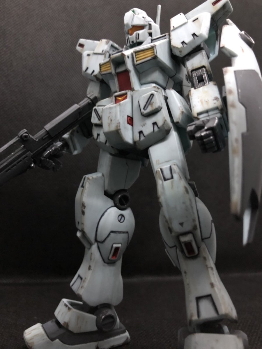 #ガンプラ好きと繋がりたい #ガンプラの画像貼るとRTされると聞いて HGジムカスタム完成! 久しぶりの連邦機体。 チッピングが少し厚過ぎたのが 今回の反省点です。 合わせ目も多く繁忙期のブランク を取り戻すにはちょうど良いキット でした。楽しかった〜(笑)