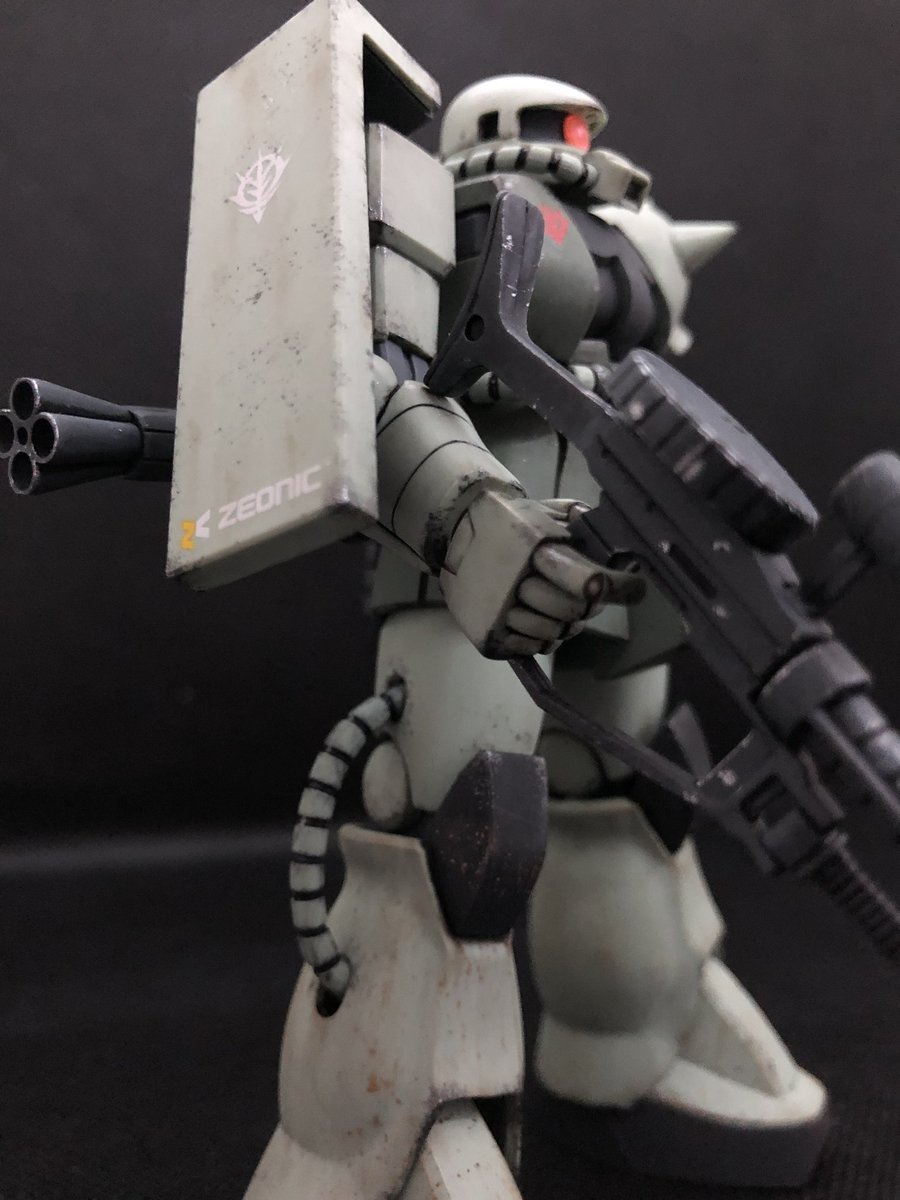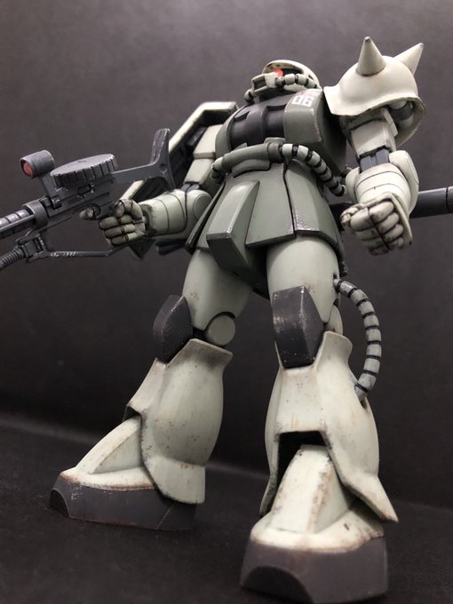 #ガンプラ #ガンプラ好きと繫がりたい #ガンプラの画像貼るとRTされると聞いて HGザク2改完成です! 合わせ目消し失敗したり ゲート処理甘かったりしましたが 汚しで誤魔化しました(笑) お目汚し失礼致しますm(_ _)m