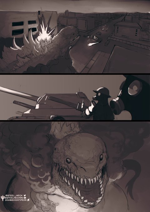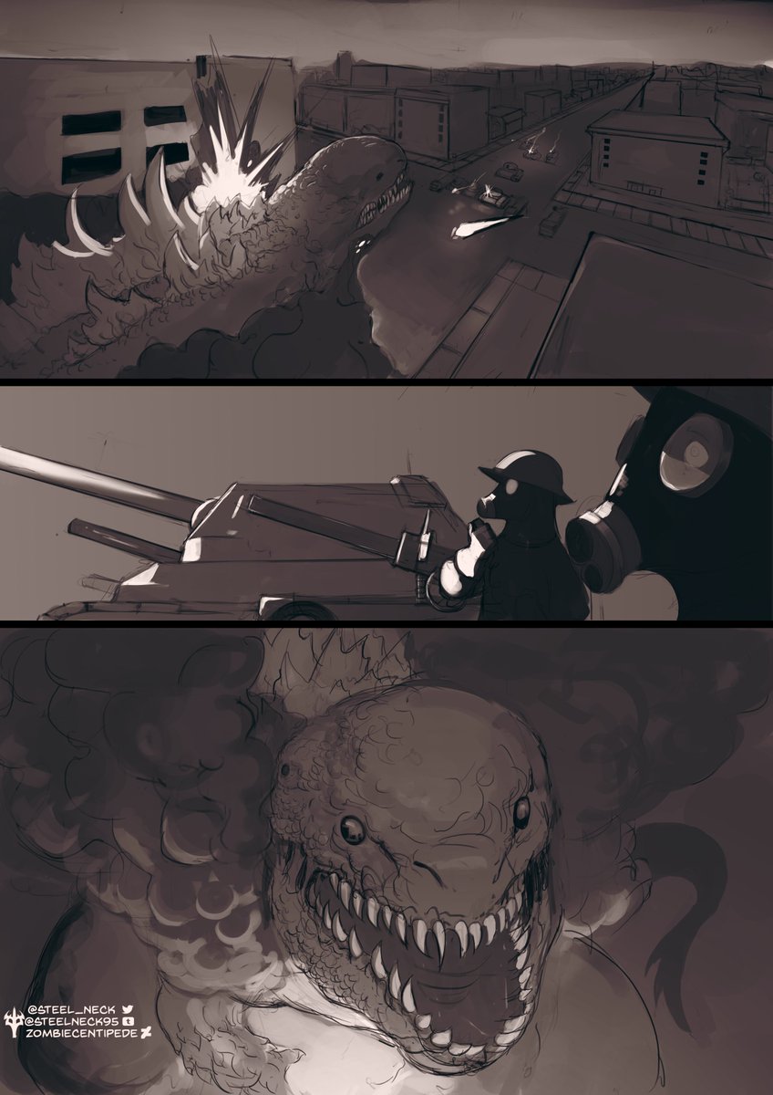 "It's been a few days since Godzilla attacked the city. Survivors are overcrowding the hospitals. The exposure to radiation's doing things to them...unspeakable things" Another excerpt from my Godzilla horror story. twitter.com/steel_neck/sta…