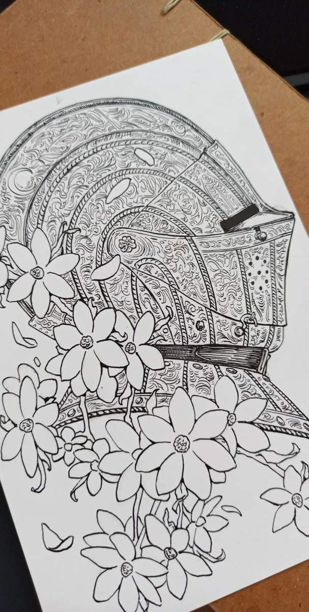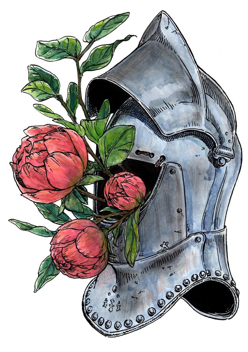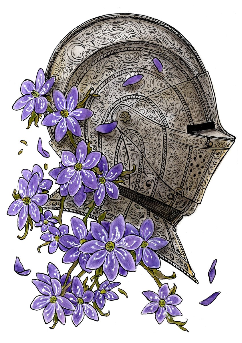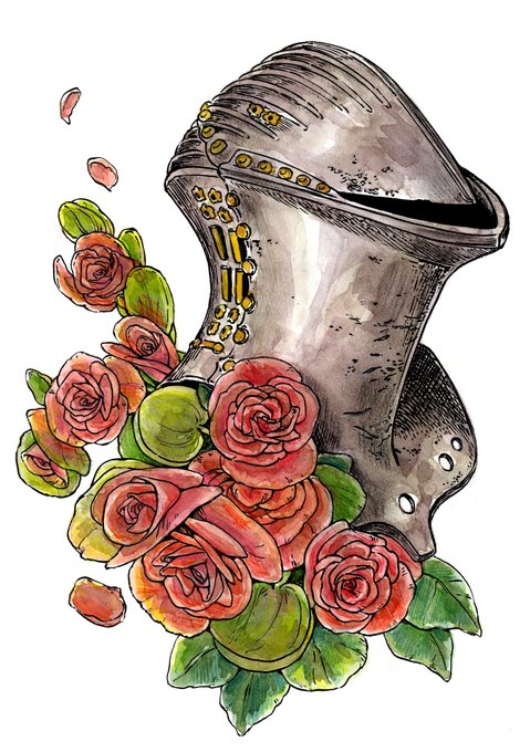 Helmets and flowers~ A5 traditional drawings with ink and watercolours. I've been a little art-blocked this month, so I thought to just draw things I like. #artistsontwitter