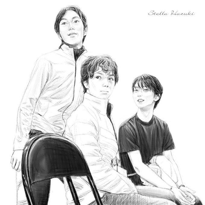 羽生さんで練習⑪ 不慣れなクリスタと不慣れな新ペンタブで 五輪ボーイズ と椅子 主に後ろの人目当てだけど(←)手前の二人も可愛く描けた 特に、デカ氏の眼がとても可愛いことに気づいてしまった……(*uωu) #羽生結弦 #YuzuruHanyu #田中刑事 #KeijiTanaka #宇野昌磨 #ShomaUno #イラスト