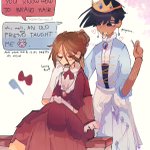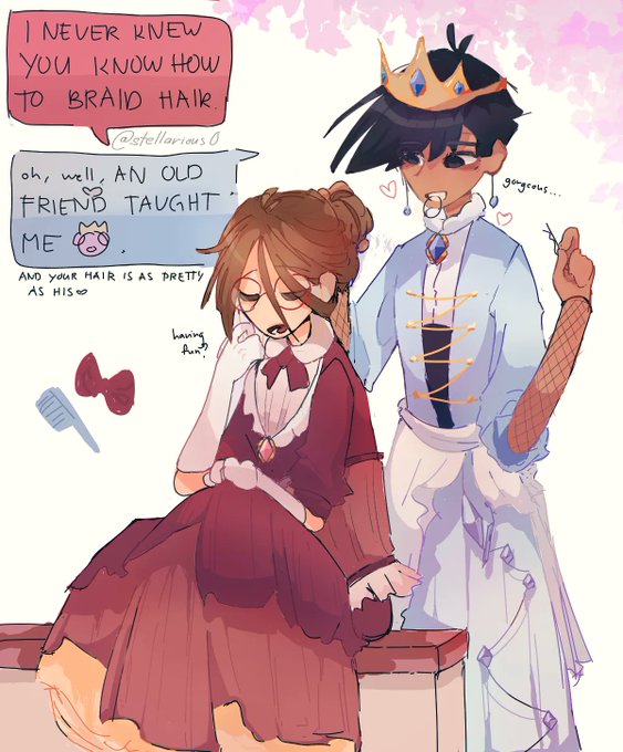 — TY FOR 300 FOLLOWERS!!! now you get happyduo in dresses >:D can you tell how much he missed doing his friends' hair? >_<,, [ rts appreciated !! ] #skeppyfanart #badboyhalofanart