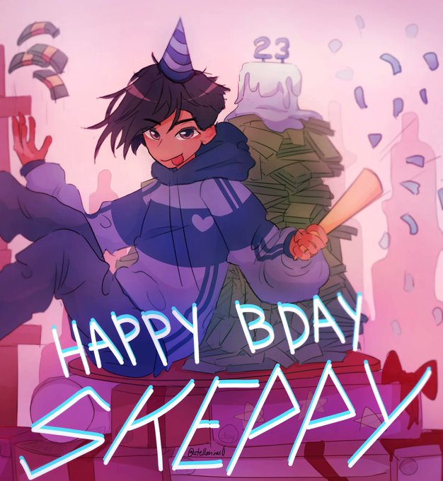 — stacks of money and presents, we have our BIRTHDAY CELEBRANT OF THE DAY!!!! 🎉🎉 HAPPY 23RD BIRTHDAY SKEPPY!! [ rts appreciated !! ] #skeppyfanart
