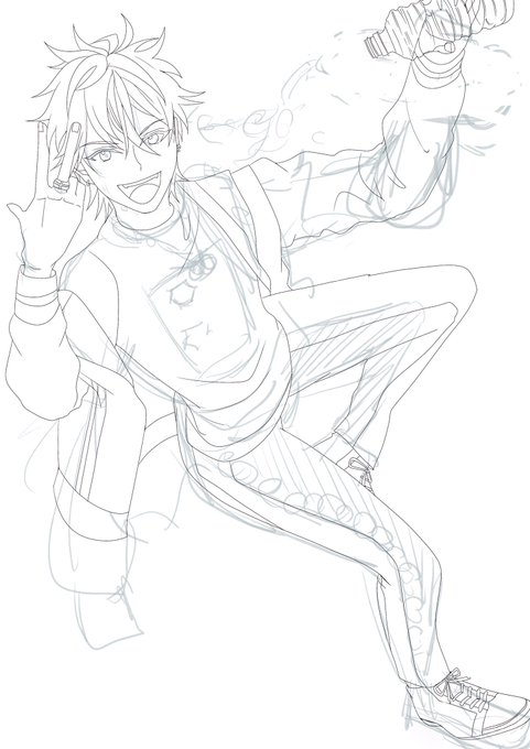 お絵描き楽しいわ🤣 あんスタ以外の絵も描いた😂 永遠の15歳w #潮江文次郎 #ルーク #イラスト