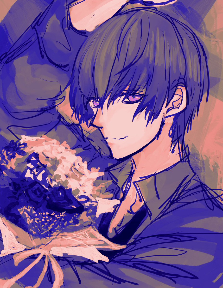 弓弦くんのスチル風に描いた😂ラフの方が茨くんっぽい🙄 どんどん茨くんから遠ざかる😅 メガネ描けない🙂 #七種茨 #あんスタ #イラスト