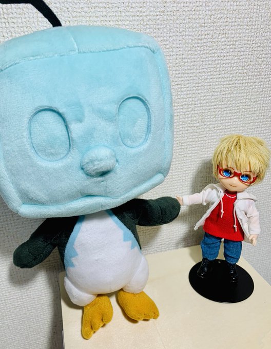 エビさんイメージドールとコオリッポ✨頭の上に乗ってるの可愛いね!コオリッポのぬいぐるみは大と小があって、大の方をお迎えしました😆✨ #絵クス絵画