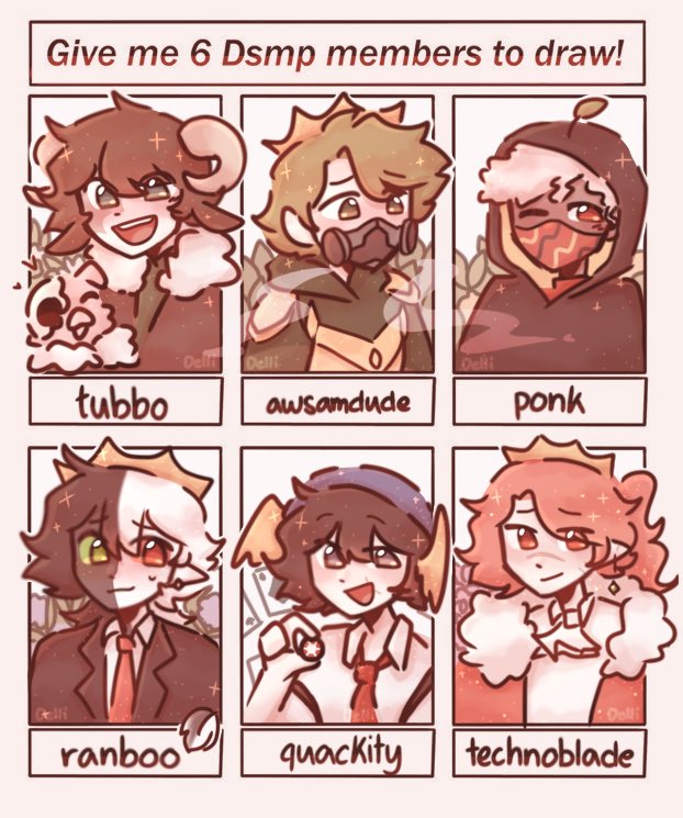 Did the funky “give me 6 dsmp members to draw” they’re all skrunkies 🕺💃 #tubbofanart #awesamdudefanart #ponkfanart #ranboofanart #quackityfanart #technobladefanart