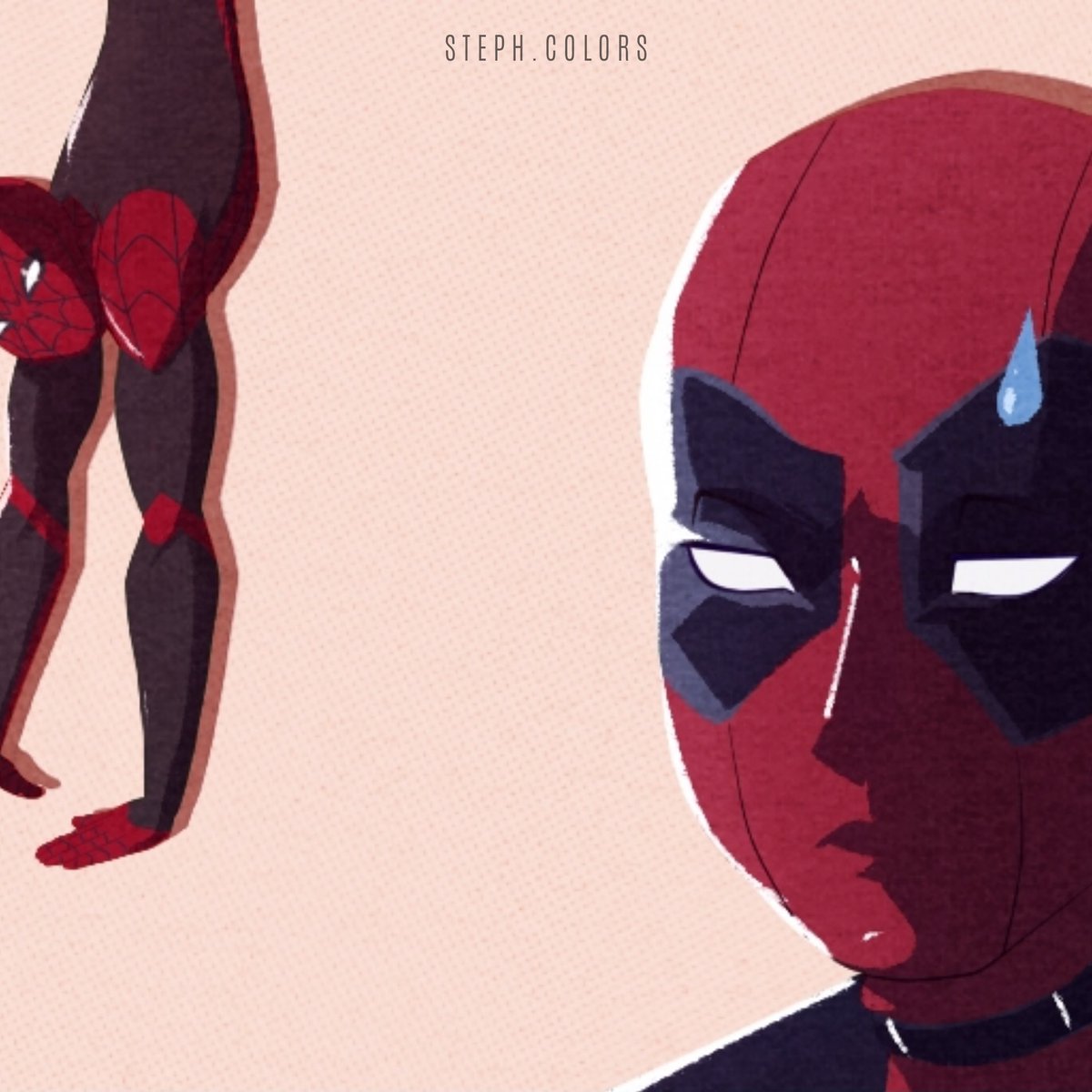 Tercer dibujo que salió en las respuestas del #SixFanarts que puse en mis historias 💖 A ver si esta referencia es de tu tamaño 😼✨ . . . . #6fanartschallenge #fanart #spiderman #deadpool #illustration #digitalpainting #easypainttoolsai