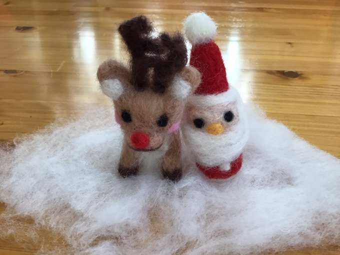 いいお天気ですね☀️ でも二十四節気の大雪なんですよ❄️ こんにちは!#ステップアップおたる です🤓 今日は #クリスマスツリーの日 なので、可愛い松ぼっくりのツリーとフェルトのサンタダルマ、 #羊毛フェルト のツリー🎄の紹介です それぞれ手のひらに乗るサイズです🎁 #ハンドメイド #小樽