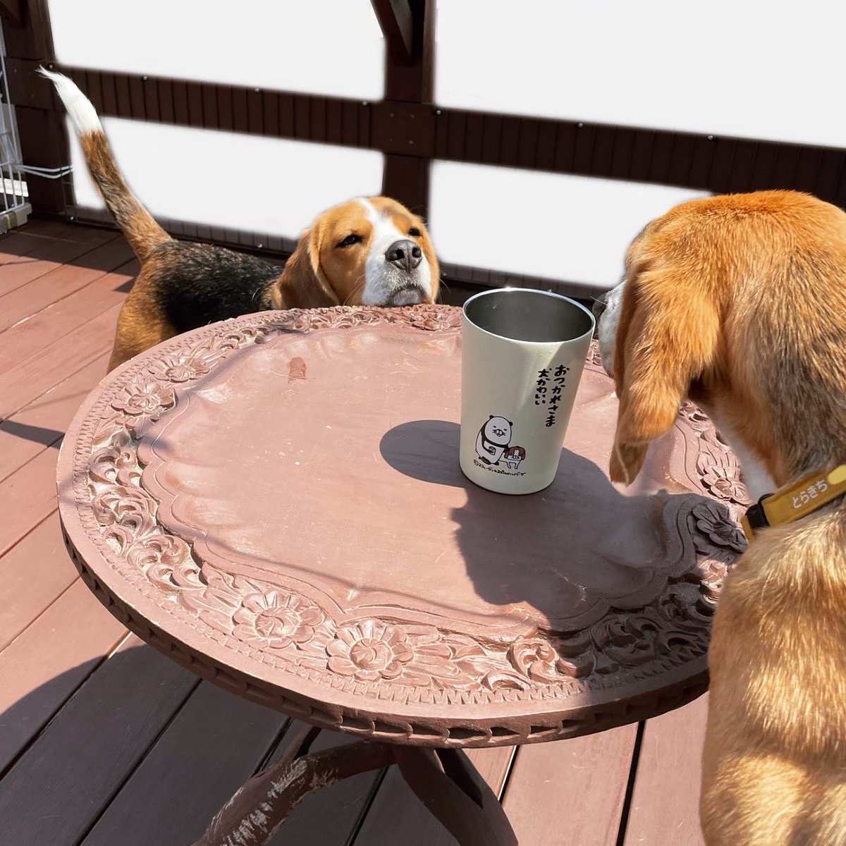23 595 おまけの 空のコップに群がるいーぬ 22/05/18 15:49