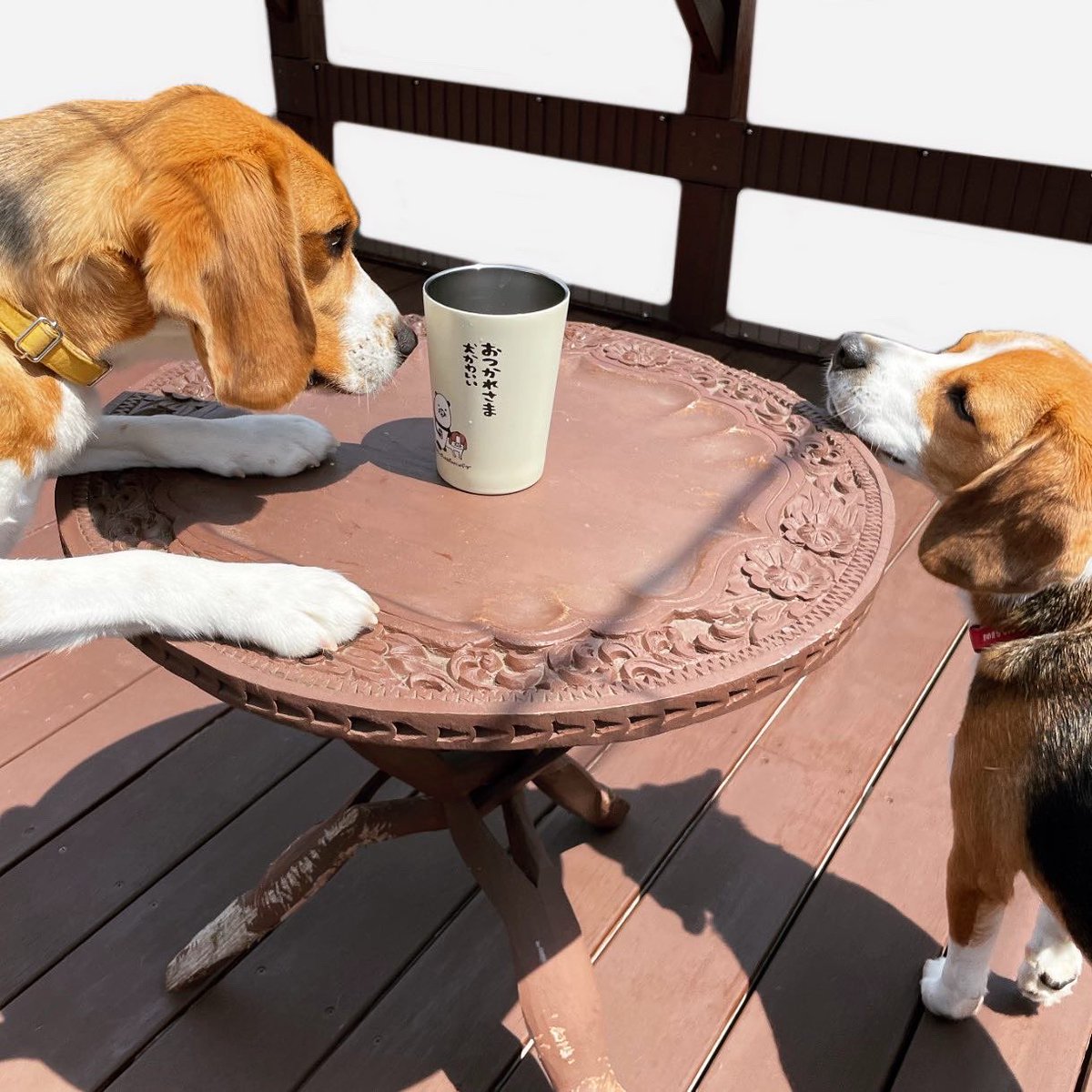 【金曜日のいーぬ】 カメラを向けると黄色いのが近づいてくるいつものやつ #パンダと犬 #犬かわいい #犬 #ビーグル #多頭飼い #スティーヴンスピルハンバーグ