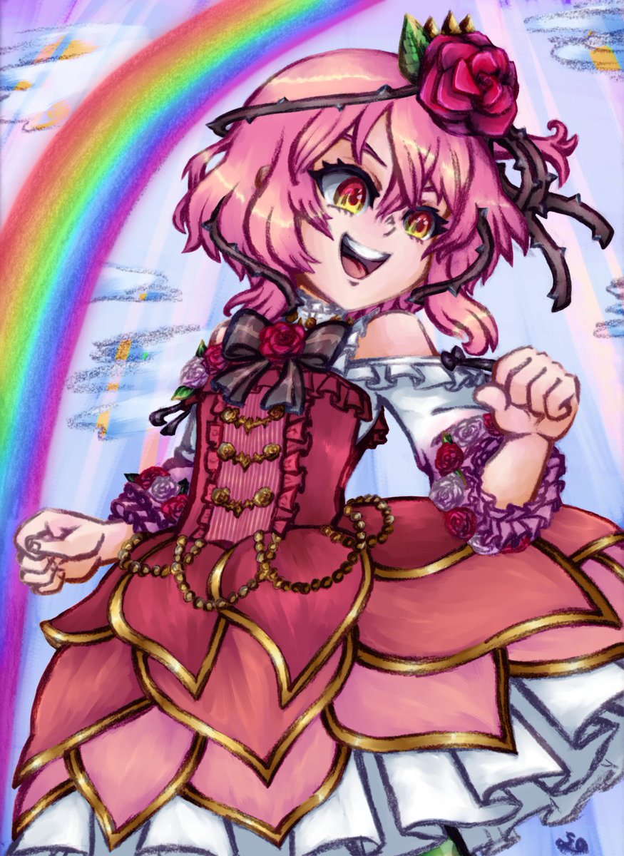 #GalleryOfRoses A shiny, pristine Rosemi under the rainbow Lined in charcoal and colored digitally
