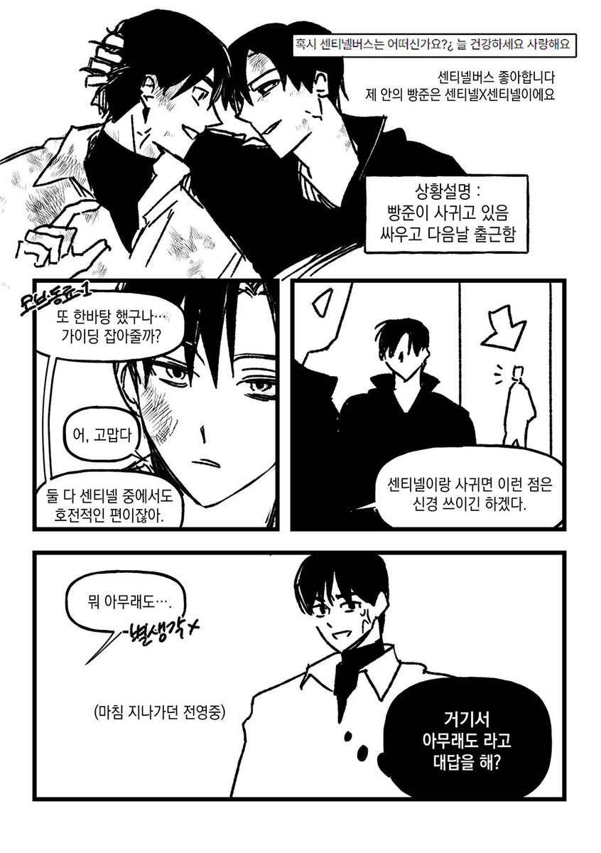 빵준 - 양가적침범 (10p) posty.pe/ga1zyd 짧고요... *준수한테 여자친구가 있음* 지난 17회 빵준 전력 주제 <습관> 어차피 늦을것같아 마음비우고 천천히그렸더니 30시간을 지각했네요..민망해라 #빵준_전력60분