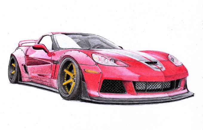 14 77 完成! CORVETTE C7 × SAVINI SV79 ビス無しワイド #色鉛筆画 #アメ車 #コルベット 22/04/02 17:41