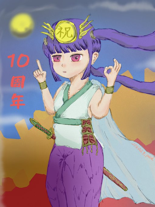 改めて10周年おめでとうございます🎉 こんな長く続けてるゲーム他には無いです!ツクヨミ最高〜 #パズドラ10周年 #パズドライラスト #パズドラ