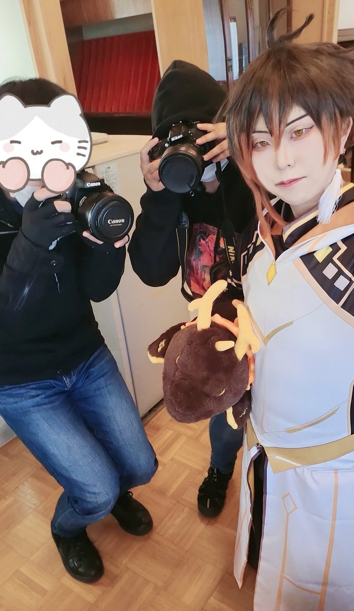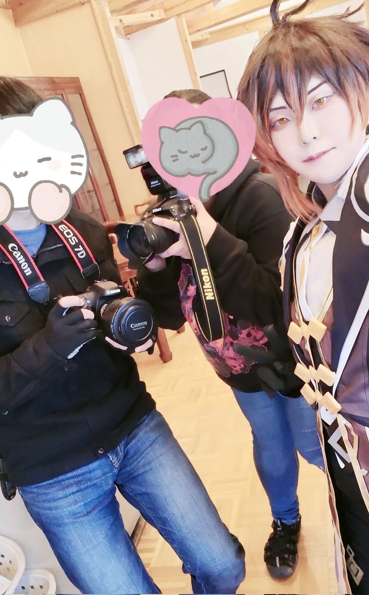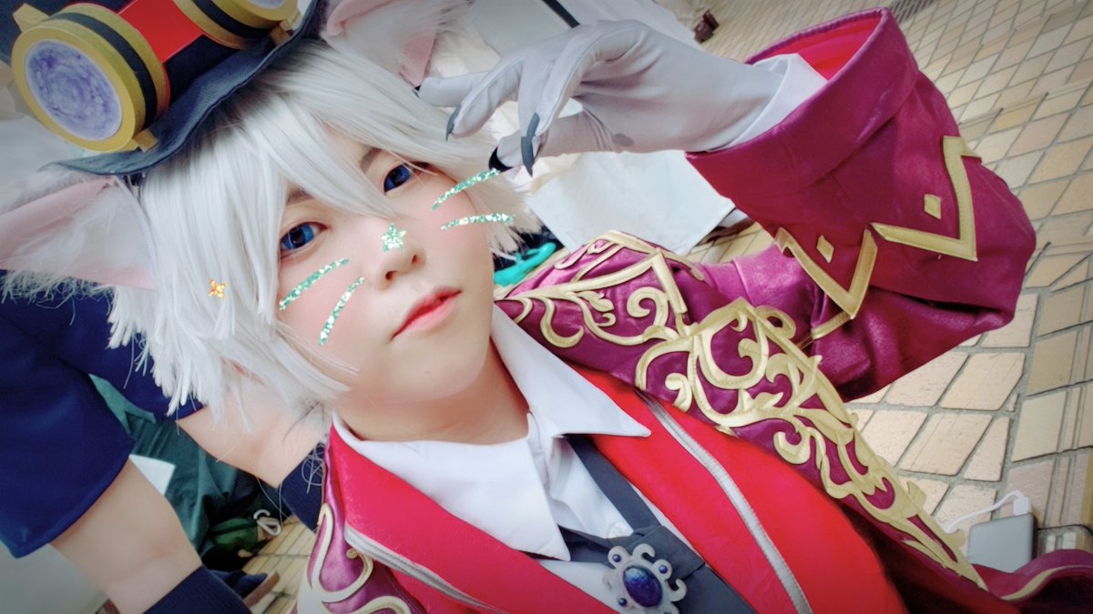 #レイヤーさんはコスプレの時のオフショットを晒して下さい 1 フォロワーさんのドーナツ見ながら会話してる一兄 2 適当に並べてもらったらスイーツ系男子になった沖矢さん 3 ポッポちゃん支えてイライさんの自撮りお手伝いするイソップ 4 着替える前に撮ってもらった運転手フロイド