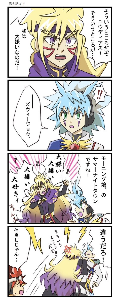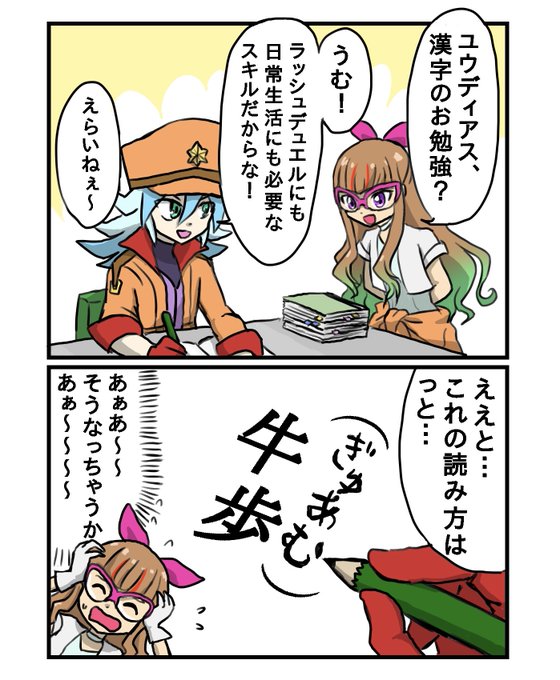 65 212 タッグフォース妄想ユウディアス版。最近ズウィばっか描いてる気がするけどやっぱユウディアスも大好きだから描きたかった。 パースのガバは許して。 22/06/18 00:30