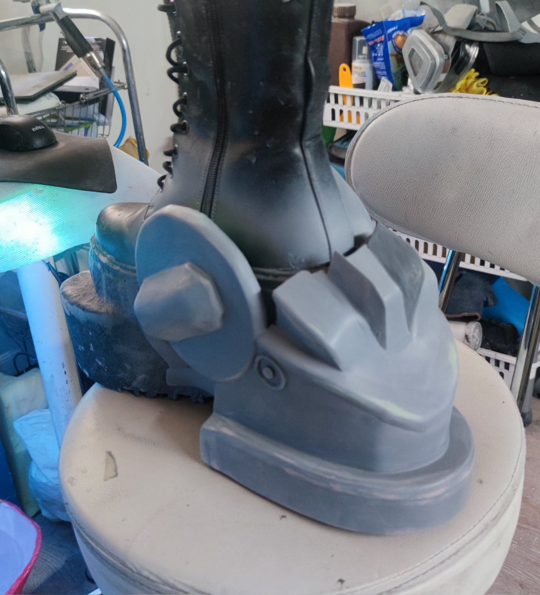 Le he añadido unos detalles a la bota y ya me he puesto a darle la masilla para ocultar las juntas... Ahora toca lo peor yo más difícil para mí, así que deseadme suerte 😭 twitter.com/stonercosplay/…