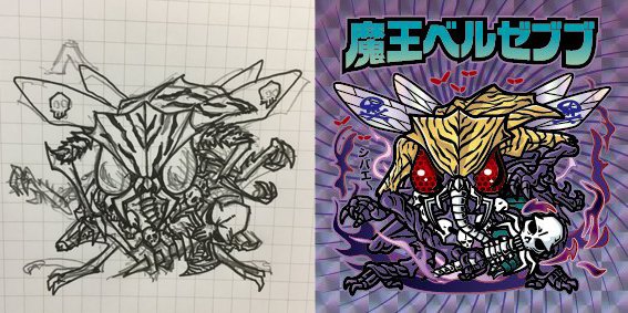 公式の今日の日めくり悪魔紹介が、ブブ様だったので。 3年前に作った1枚目のシール。構造理解が大変で、自分で描いたイラストにトレペかけてトレースして、脚まわりの構造とか何度も描き直したアナログな作り方で多分一番時間かけた気がする。 #自作シール