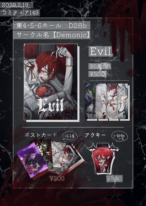 2月19日のコミティア143に参加します!スペースは༒D28b༒です😈 イラスト本、ポストカード、アクリルキーホルダーを持っていく予定です〜 初めてのサークル参加でドキドキですが、当日はよろしくお願い致します❤️🔥 #COMITIA143 #コミティア143