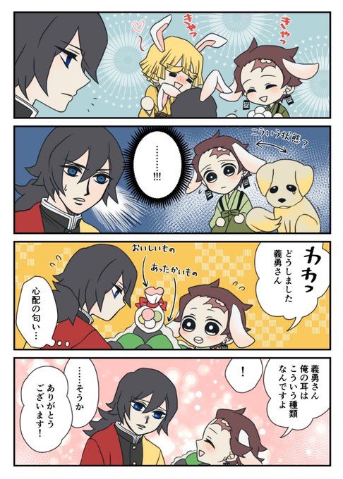 11 104 【義炭】お月見のうさみみスタイルかまぼこ達の中で、たんじろだけおみみが垂れてるのを見て何かを勘違いした男・Giyu-tomioka。元気になってほしい気持ちが先走って無言で甘やかしてくるという一幕ですw😂 22/09/16 04:41