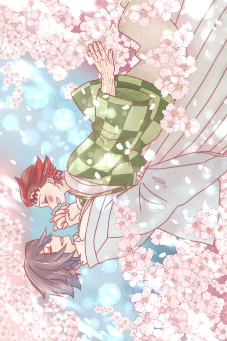 義炭深夜のらくがき3枚目 「恋となる」 お正月に描いてた二枚の続きですね。これで完成😊 降り注ぐようなぎゆさんの想いを感じてるたんじろと、たんじろからもらう感情が心の内にどんどん積もっていくぎゆさん、やがてお互いに降り積もった想いは「恋」を縁取る というイメージです🌸