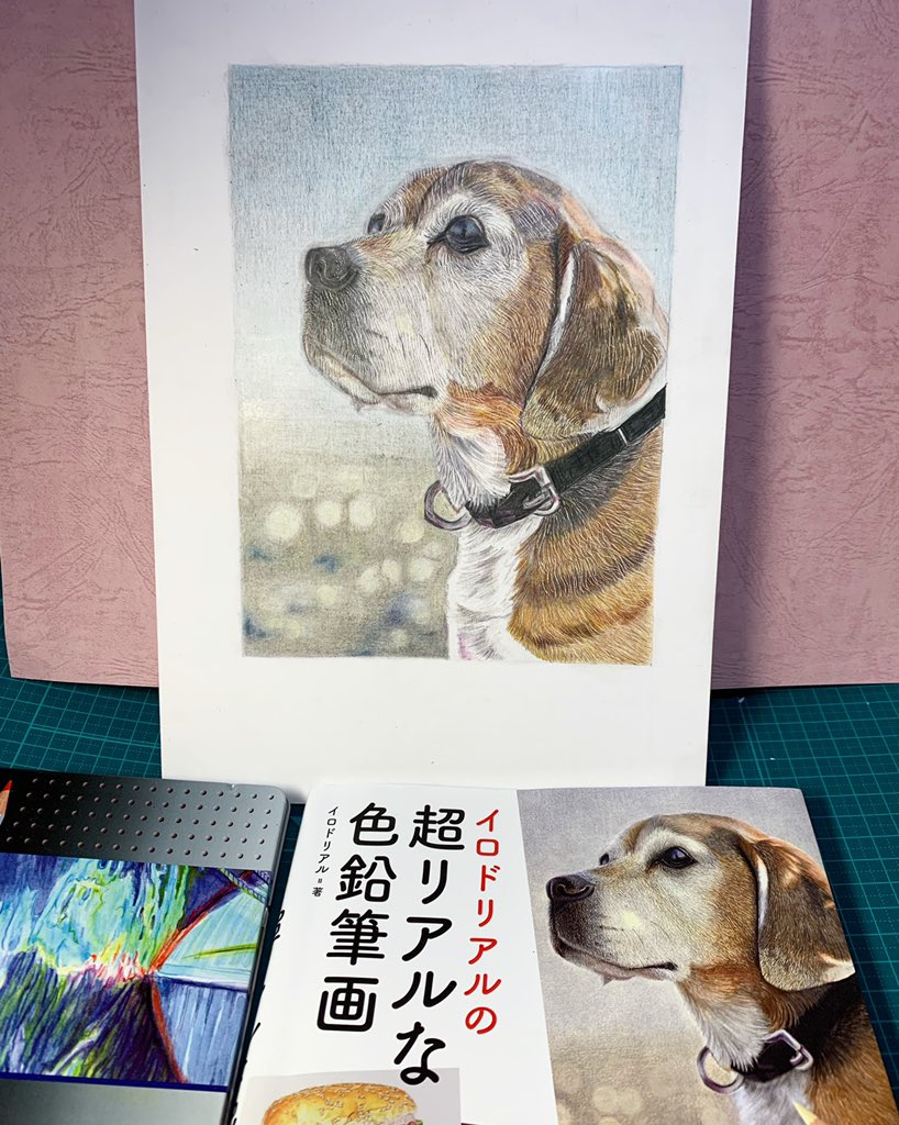 イロドリアルさんの超リアルな色鉛筆画 画像の絵はこちらの書籍を拝見して描きました🐕 構図・色の乗せ方などとても勉強になる一冊となりました‼︎ おすすめの一冊です♪ #イロドリアル #色鉛筆画 twitter.com/bonbon201709…