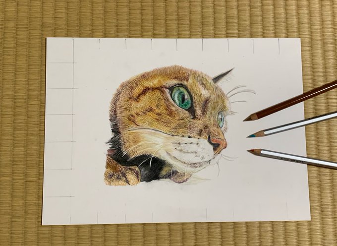 #みんなで色鉛筆イラスト見せ合おうよ ①2021年5月下旬イロドリアルさんの書籍『超リアルな色鉛筆画』掲載作品の模写練習 ②同時期 音海はるさん🐾猫ちゃん絵の模写アレンジ練習 ③2020年2月 ④2018年〜2019年 イロドリアルさんほんと凄いです!