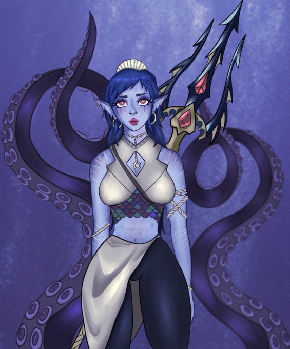 🐟💙 sea elf tentacle lady 💙🐟 + some art I did for my new dms homebrew book 😈 . . . #dnd5e #dndart #DnDcharacter #dndcommission #illustration #fantasy #Commission #art #Digital #DnD #dungeonsanddragons