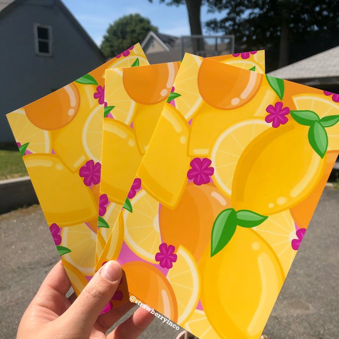 summery prints, paintings, stickers & more for sale in my shop 💓🍉🍊🍋☁️ strawberryincdesigns.com/shop