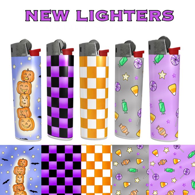 halloween lighters are BACK just in time for spooky season! 🎃💜🖤🧡🍭 (PRE-ORDERs end on 9/22/23) strawberryincdesigns.com/shop/lighters