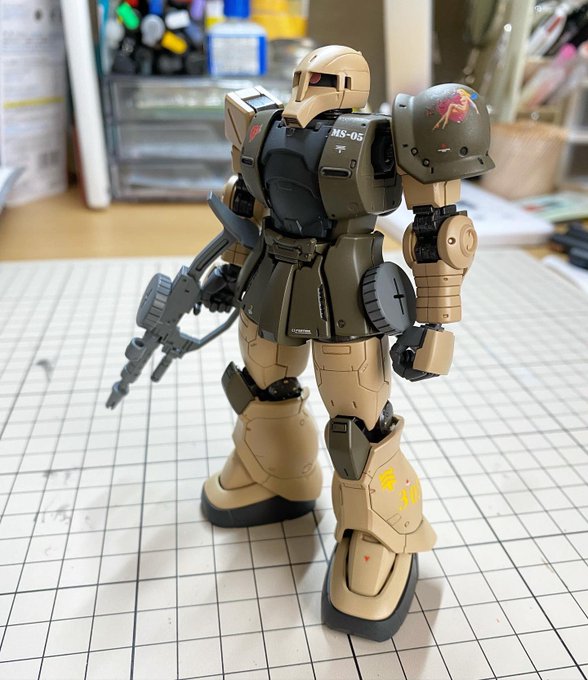 0 9 νガンダムに続き、オリジン版の旧ザクをデザートカラーで塗ってみた。 #旧ザク #ザクI #オリジン #ガンプラ 20/03/31 00:06