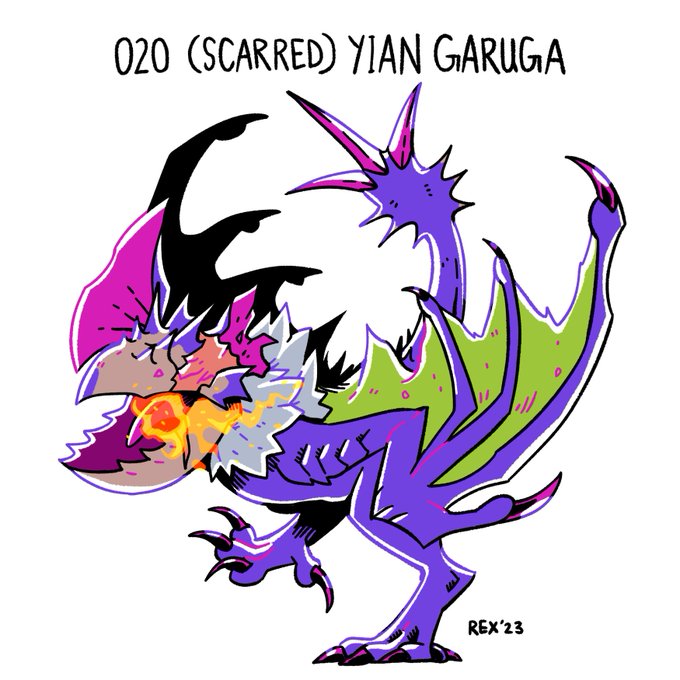 Technically a fifth generation monster, Scarred Yian Garuga wasn't made into a variant until MHWI as a tempered exclusive variant of Yian Garuga. However, all individuals in MHF and beyond were "scarred". #MonsterHunter 020 (Scarred) Yian Garuga