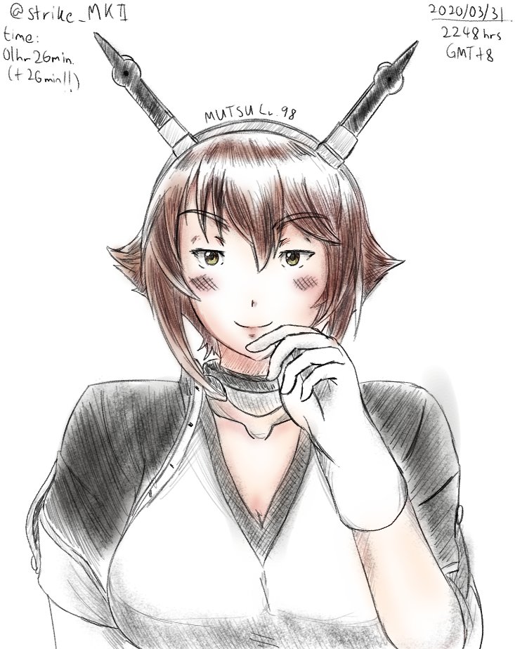 「提督がそう言ったら…このお姉さん、本・気になっちゃうよ〜」 というわけで今夜は陸奥さんです 前のワンドロよりちょっと小さくで描いてたけど細かい所に挑戦するのがウチの悪クセらしい。ドMじゃないけど #艦これ版深夜の真剣お絵描き60分一本勝負 #艦これ版真剣お絵描き60分一本勝負_20200331