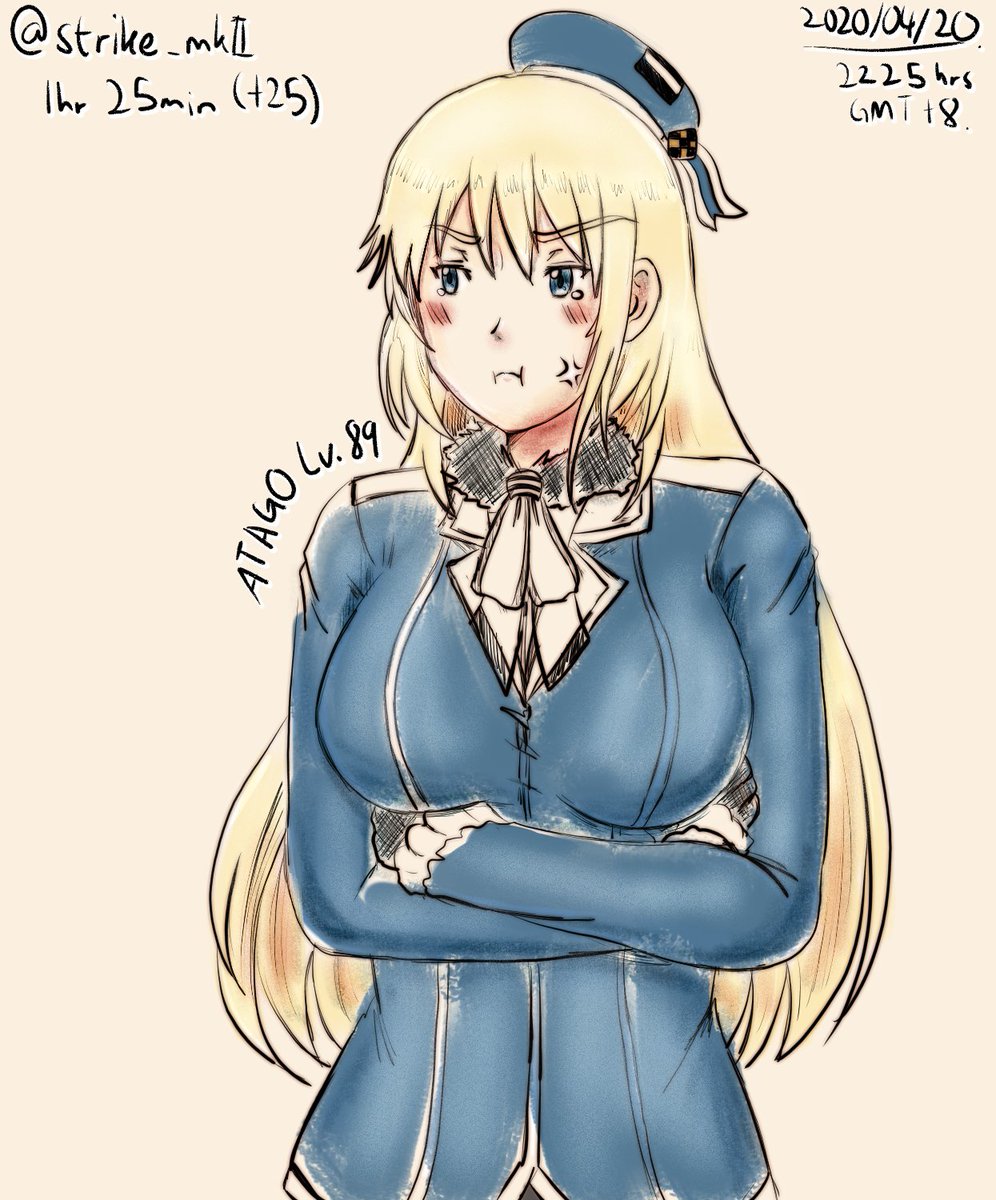 実は書いた時間よりオーバーです(タッチアップのせいでw) 愛宕「て~い~と~くぅ、私は提督の最初の巡洋艦ですよね?それから全然かまってくれないよね?ど・う・し・て・デ・ス・カァ???」 #艦これ版深夜の真剣お絵描き60分一本勝負 #艦これ版真剣お絵描き60分一本勝負_20200420