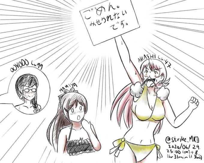 イムヤ『Commander, this is Wolfpack lead speaking. Confirming visuals of target, over.』(司令官、こちらはウォルフパックです。目標発見を確認します。以上) 今夜は結構ラフで。I-168です #艦これ版深夜の真剣お絵描き60分一本勝負 #艦これ版真剣お絵描き60分一本勝負_20200429