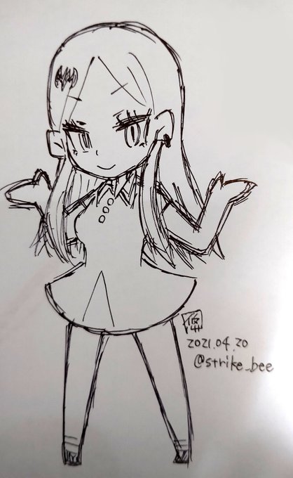 13 44 VEEの神童児丫子氏、ずびゃっと練習してみたのだけど、描くためのコストが結構ある… あのナハハハハって笑い方と、言葉の合間合間にちいさい「ぁ」が入る感じの喋り方がじわじわとクセになっています 「コーヒーを飲みます。」 も好き #あこあーと 22/07/13 03:02