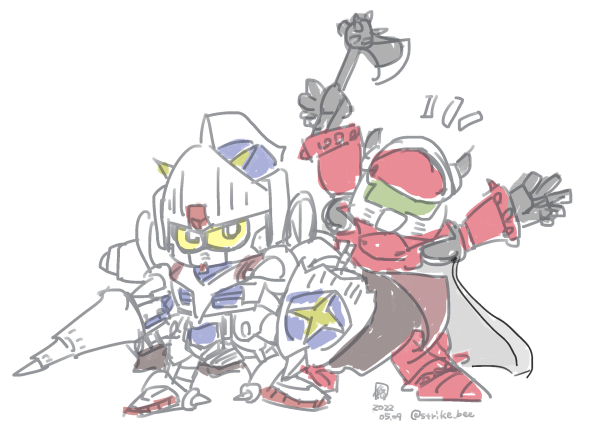 1 8 とんでもなく久しぶりにお絵かきしたくなったので、うろおぼえナイトガンダムさんwithにぎやかし戦士ガンキャノンを描きました 22/05/09 01:20