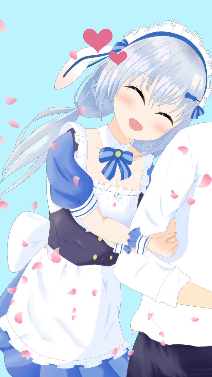 💙「ご主人、もっとなのの近くに来てください!」 ☕️「ご主人はやくー!」 (この間のなのちゃんの隣にもかたんも!) #天使のアトリエ #天使なの #もか萌絵 #萌々嫁もか