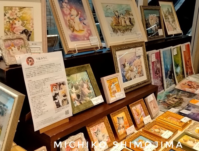 丸猫展、後半の3日目!元気に始まります🎵在庫残りわずかとなっていたグッズも本日追加して盛りだくさんで出展します!ぜひお越し下さい。猫ちゃん似顔絵もお描きしていますよ🐱 #猫 #絵 #イラスト #下島みちこ #丸猫展 #丸善丸の内本店