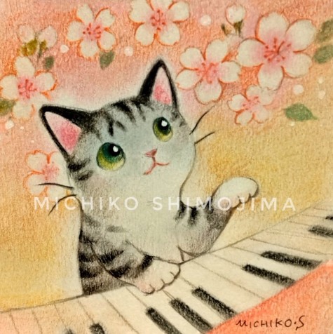 2 8 明日から始まるよ🎵お写真から猫ちゃん似顔絵もお描きします。※予約多数の場合は早めに受付を締め切る場合があります。 ぜひお立寄りください🐾日本橋駅、東京駅八重洲北口からすぐの丸善さんで出展します。 #猫 #桜 #ピアノ #絵 #イラスト #下島みちこ #丸善日本橋店 23/03/07 21:31