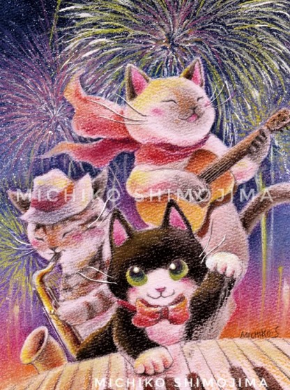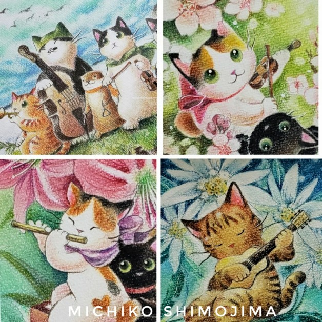 3 25 今日は #楽器の日 🎻🎹🎵個展で展示中の作品にも楽器を手にした猫たちがたくさん登場しています🐱(ちなみに作者本人はアマチュアヴァイオリン弾き。オーケストラでも演奏しておりました😝)絵の詳細は #またたび堂 さん通販サイトでご覧いただけます。→matatabido.shop-pro.jp/?mode=srh&sort… #猫 #絵 #下島みちこ 23/06/06 17:57