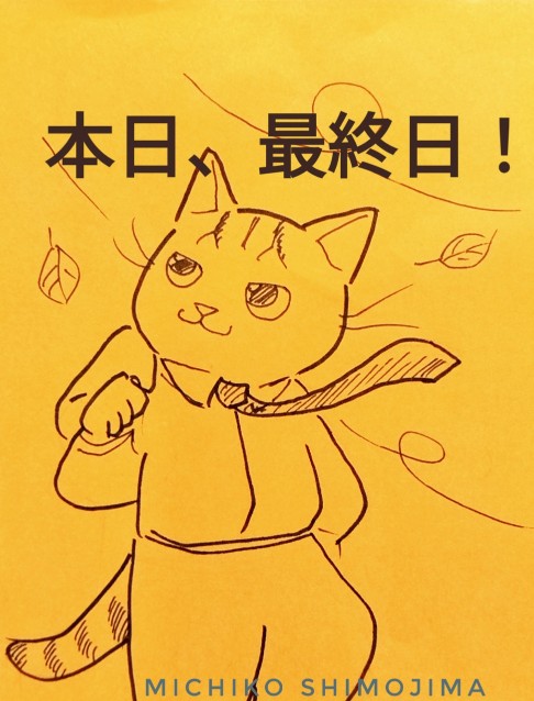 丸猫展6日目!始まります!! 会期は明日22日まで。明日は最終日のため早めの17時閉場です。お越しになる方はご注意下さい😊 #猫 #絵 #イラスト #下島みちこ #丸猫展 #丸善丸の内本店