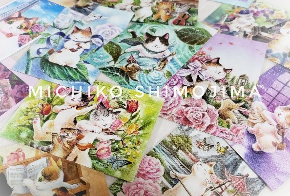 1 4 3/18(火)から開催!「Strings Cat~猫と音楽とアート~」🎵 缶バッジ、ポストカード、画集などのグッズも盛りだくさんで出展します😊会期中はずっと常駐します。ぜひお越しください。大森駅直結のアトレ4階丸善文具売り場です。 #猫 #絵 #イラスト #下島みちこ #ポストカード #絵葉書 #缶バッジ 23/04/15 21:13
