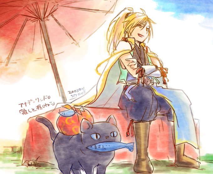 26 122 #アナデンワンドロワンライ 「推しと推しねこ」 「クロミツよ、あの者は昨日俺が声をかけたおなごだと思うか」 「なー(知らんがな)」 20/03/01 00:39